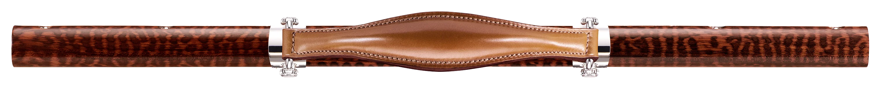 材质的选择其实也关乎使用者个性的传递:低调的马臀革和温润的纯银零件交相辉映,蛇纹木的加入让这种表面的温和有了极强的张力,